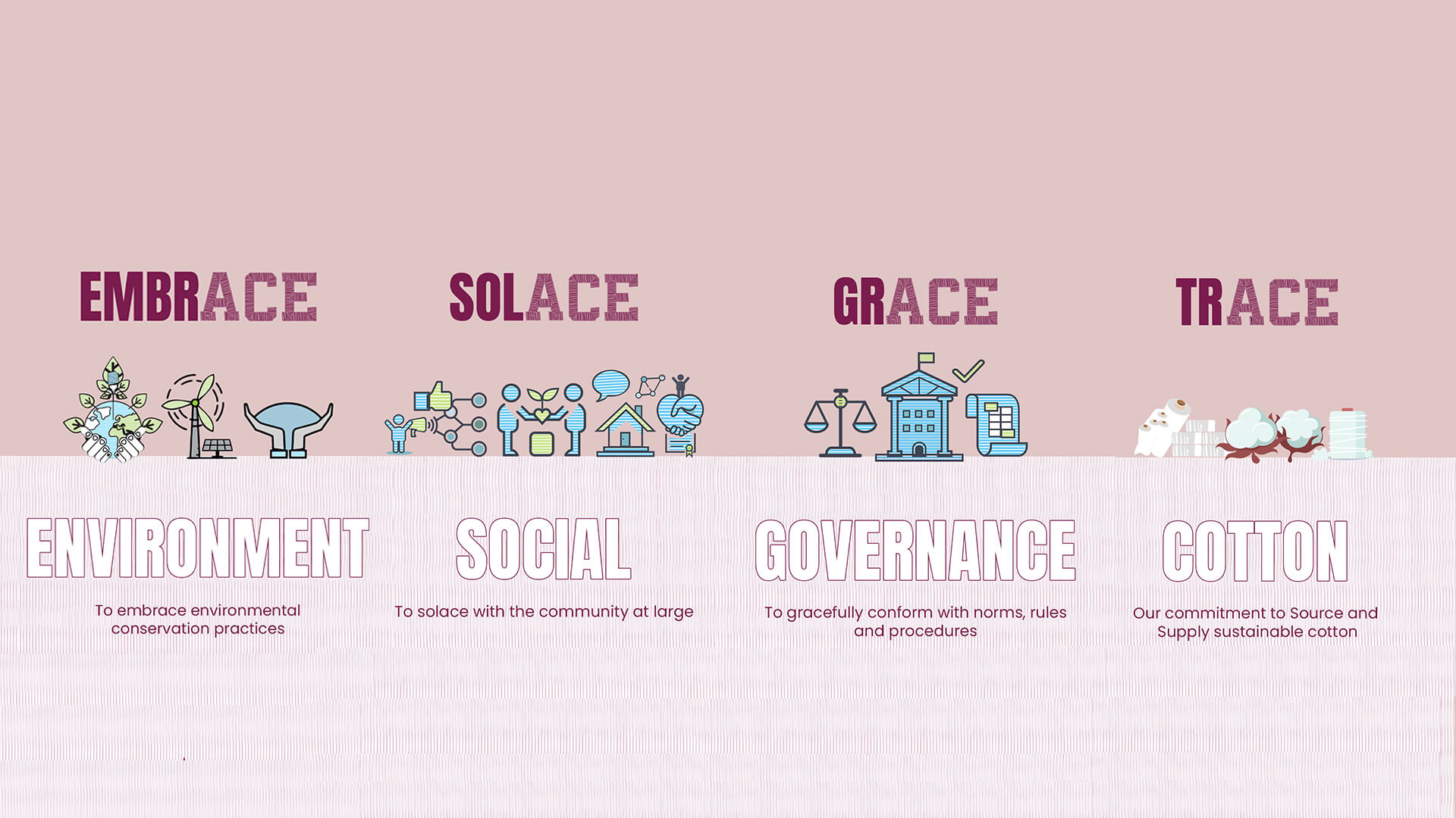 Staying rooted to our values and strive to be preferred supplier in Sustainable and Value-added apparels supply chain by focusing on growth with sustainability as core strategy.