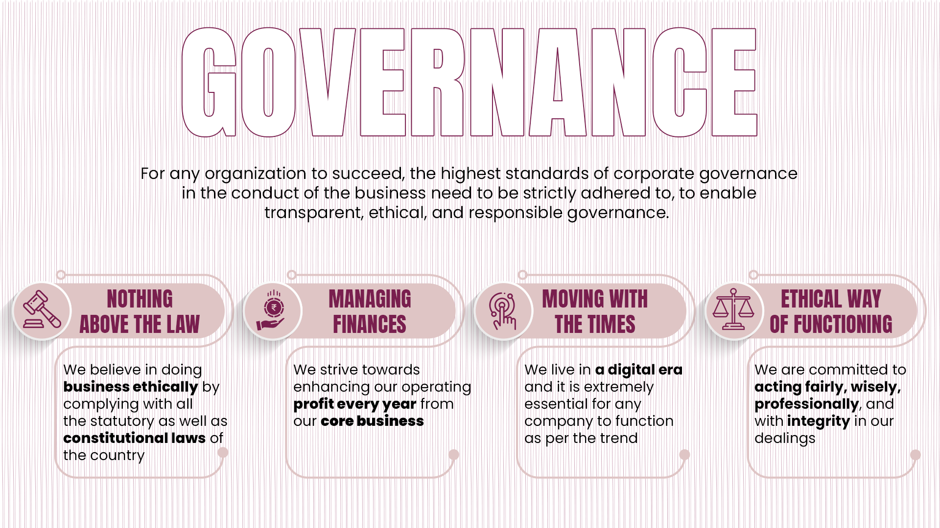For any organization to succeed, the highest standards of corporate governance in the conduct of the business need to be strictly adhered to, to enable transparent, ethical, and responsible governance. At Pashupati, we aim to create such a structure that accountability and authority go hand in hand and the ultimate beneficiaries are the customers and shareholders. On the aspect of governance we implement the following policies: