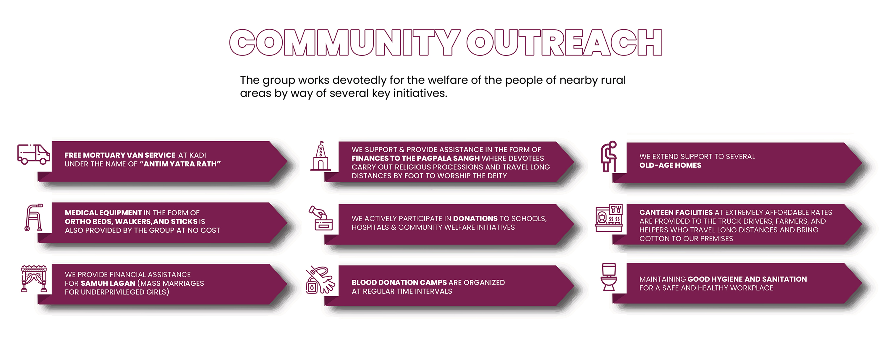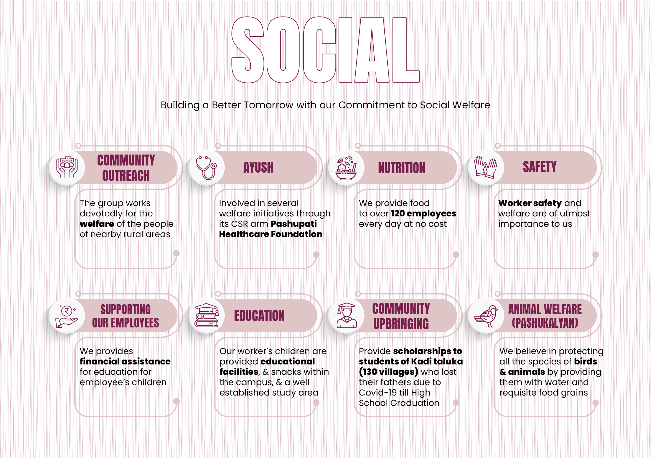 In the year 2021, the company pledged to provide scholarships to students of Kadi taluka (130 villages) who lost their fathers due to Covid-19 till High School Graduation.